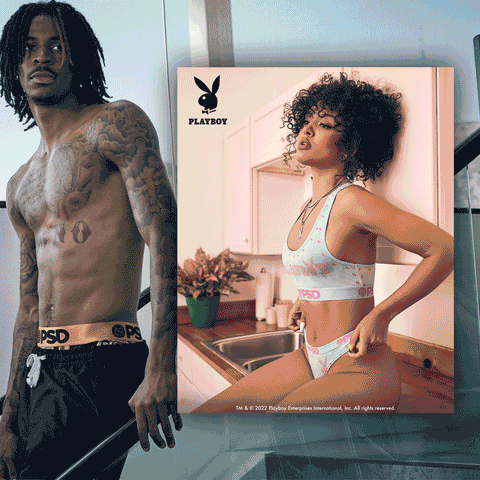The must-have looks in the Playboy x PSD collection feature vintage graphics and modern designs all with the iconic bunny logo.